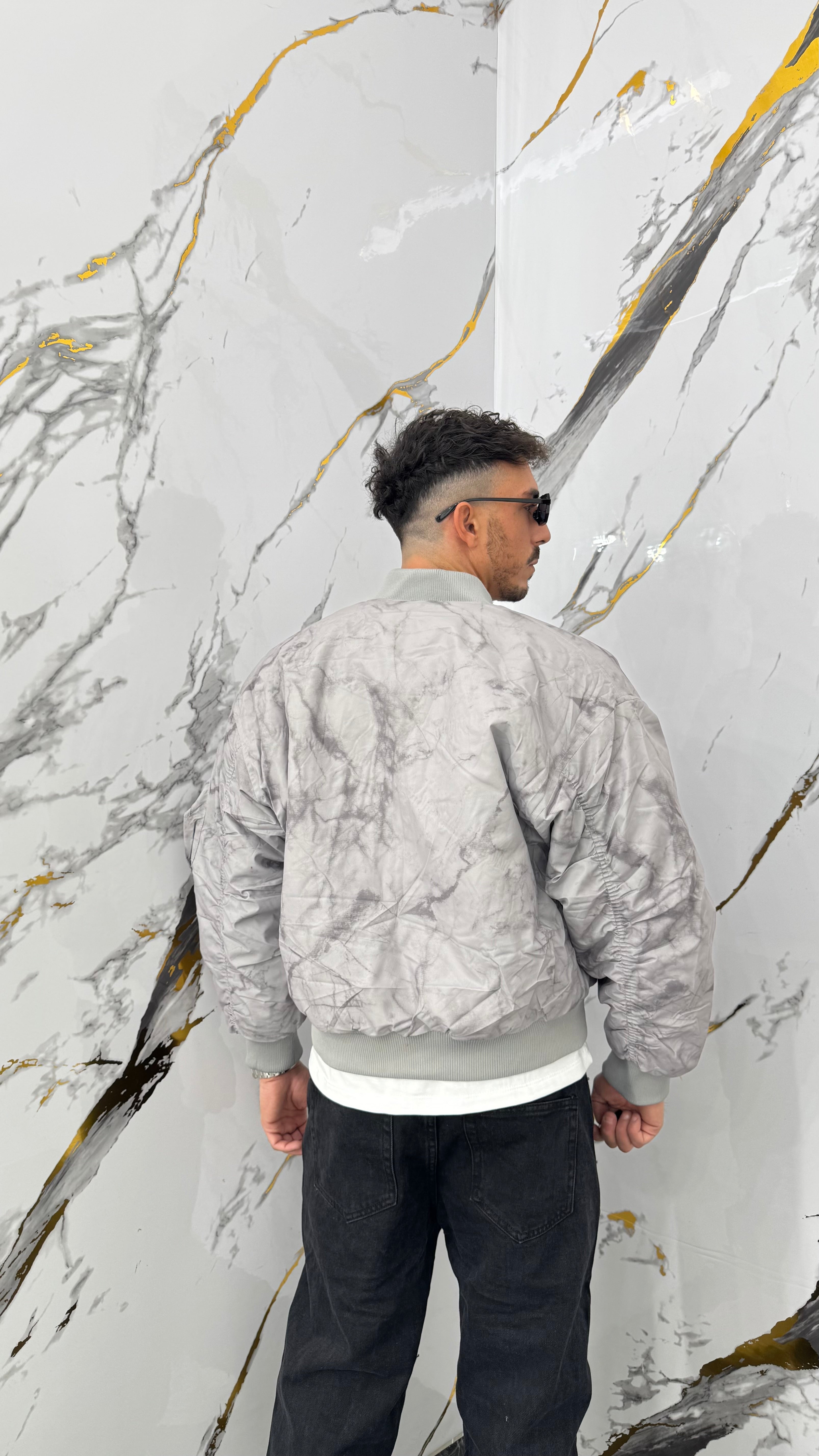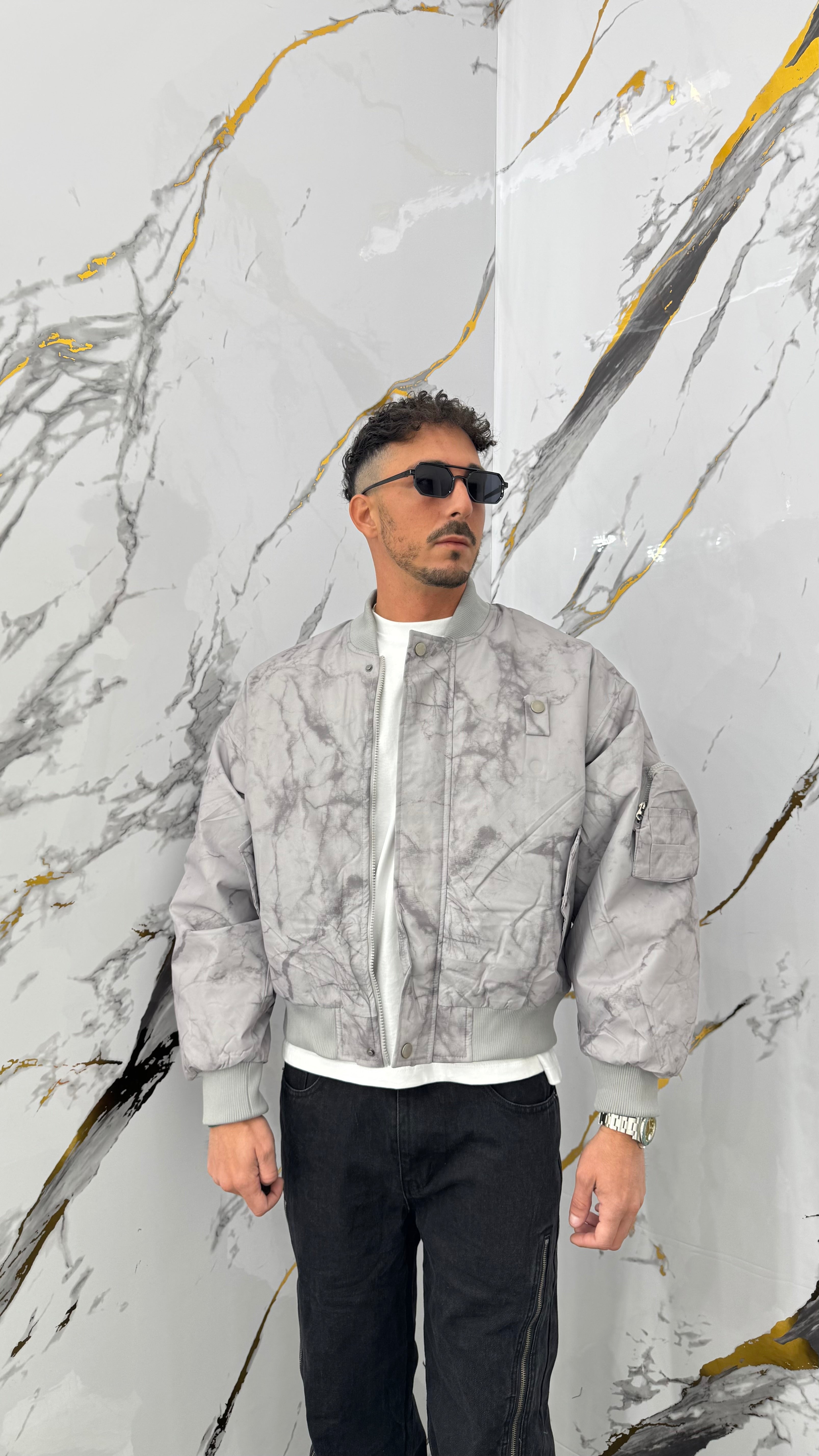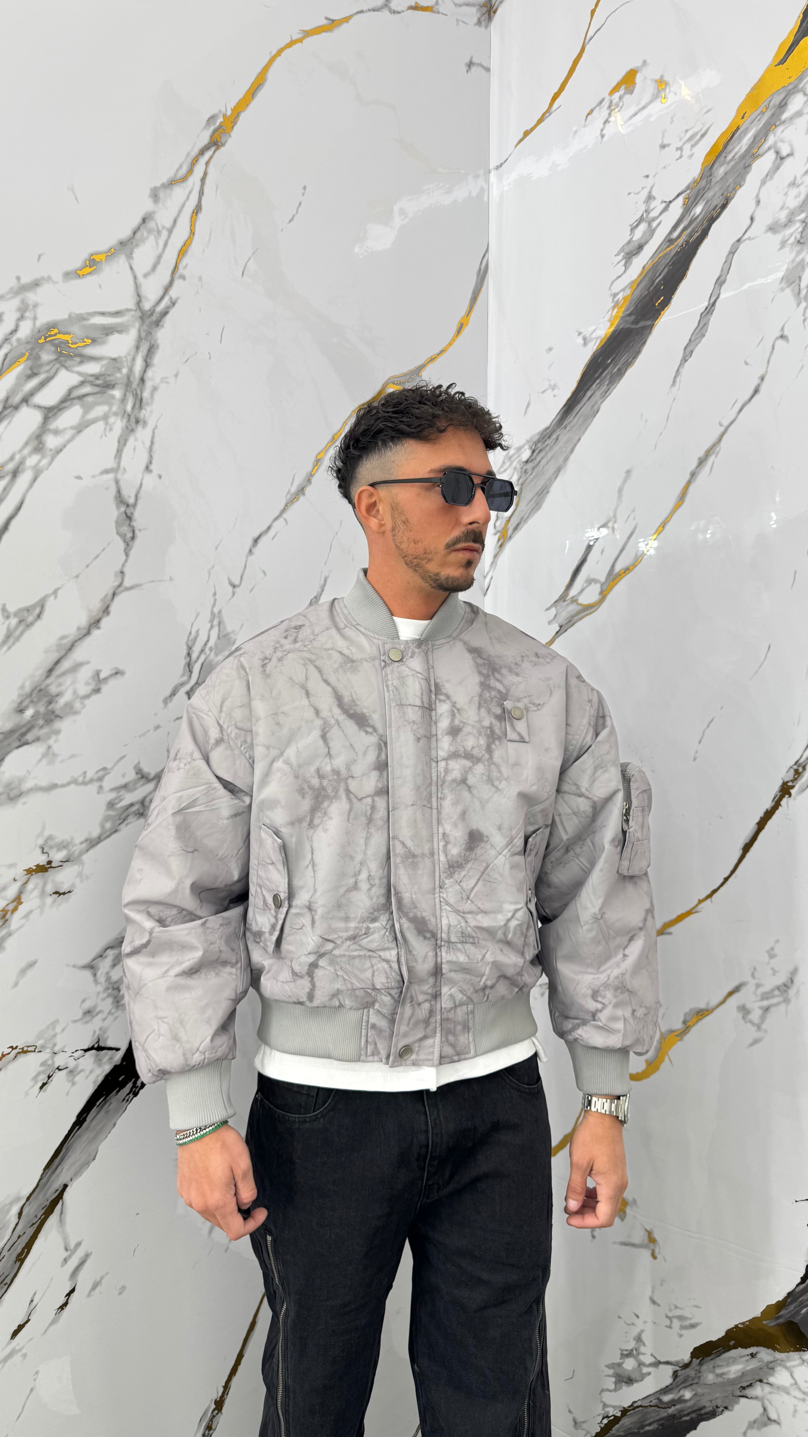 Bomberino marmorizzato grigio crop