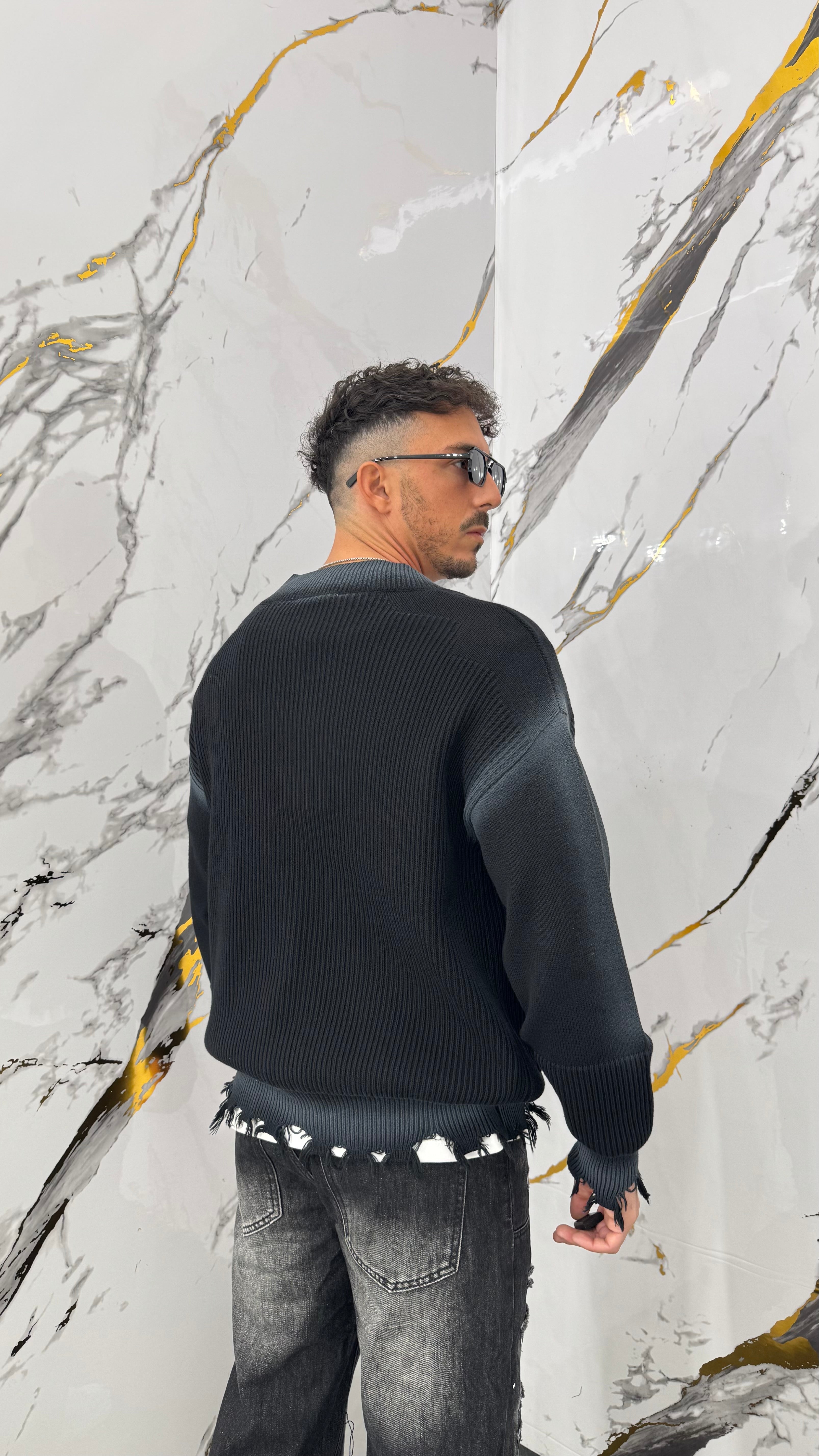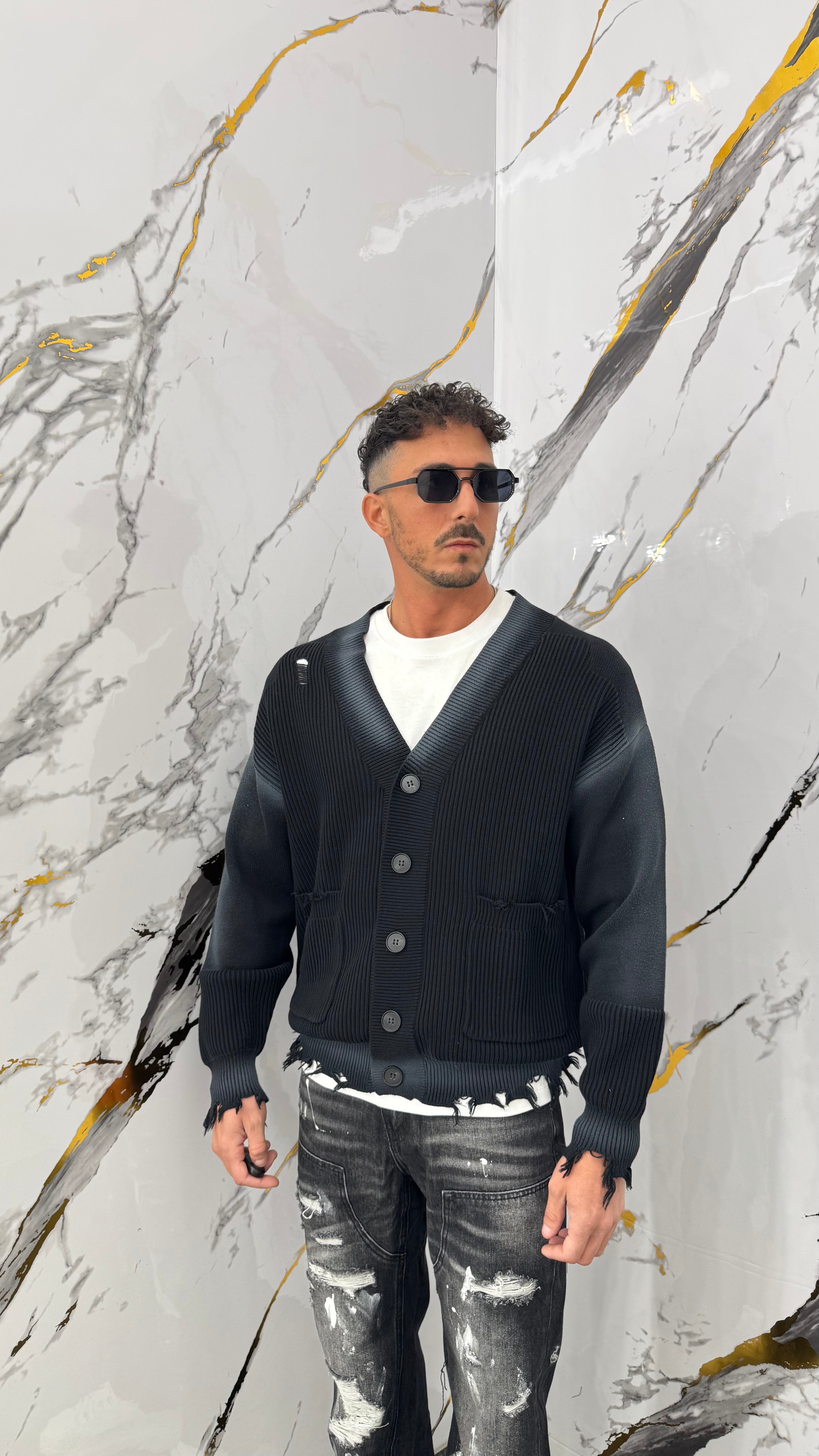 Cardigan sfumato con strappi su fondo e maniche