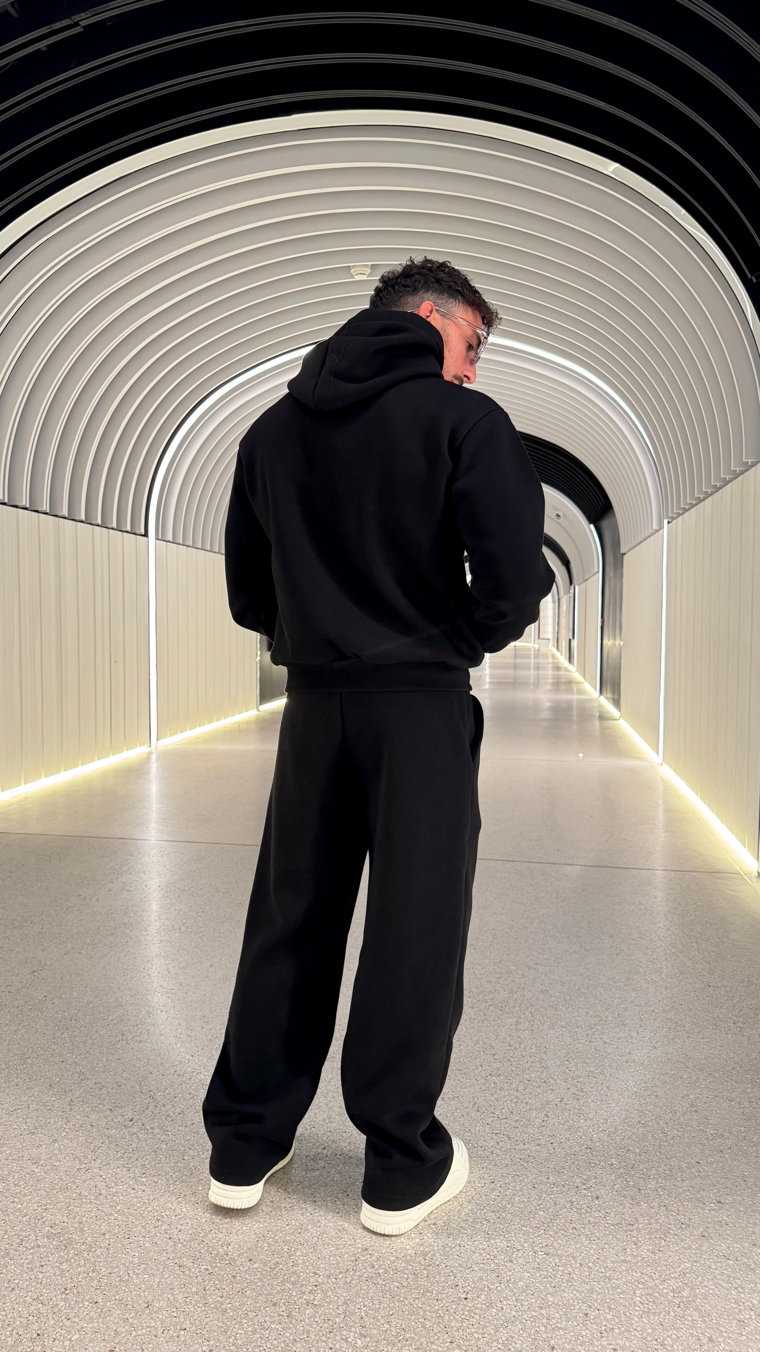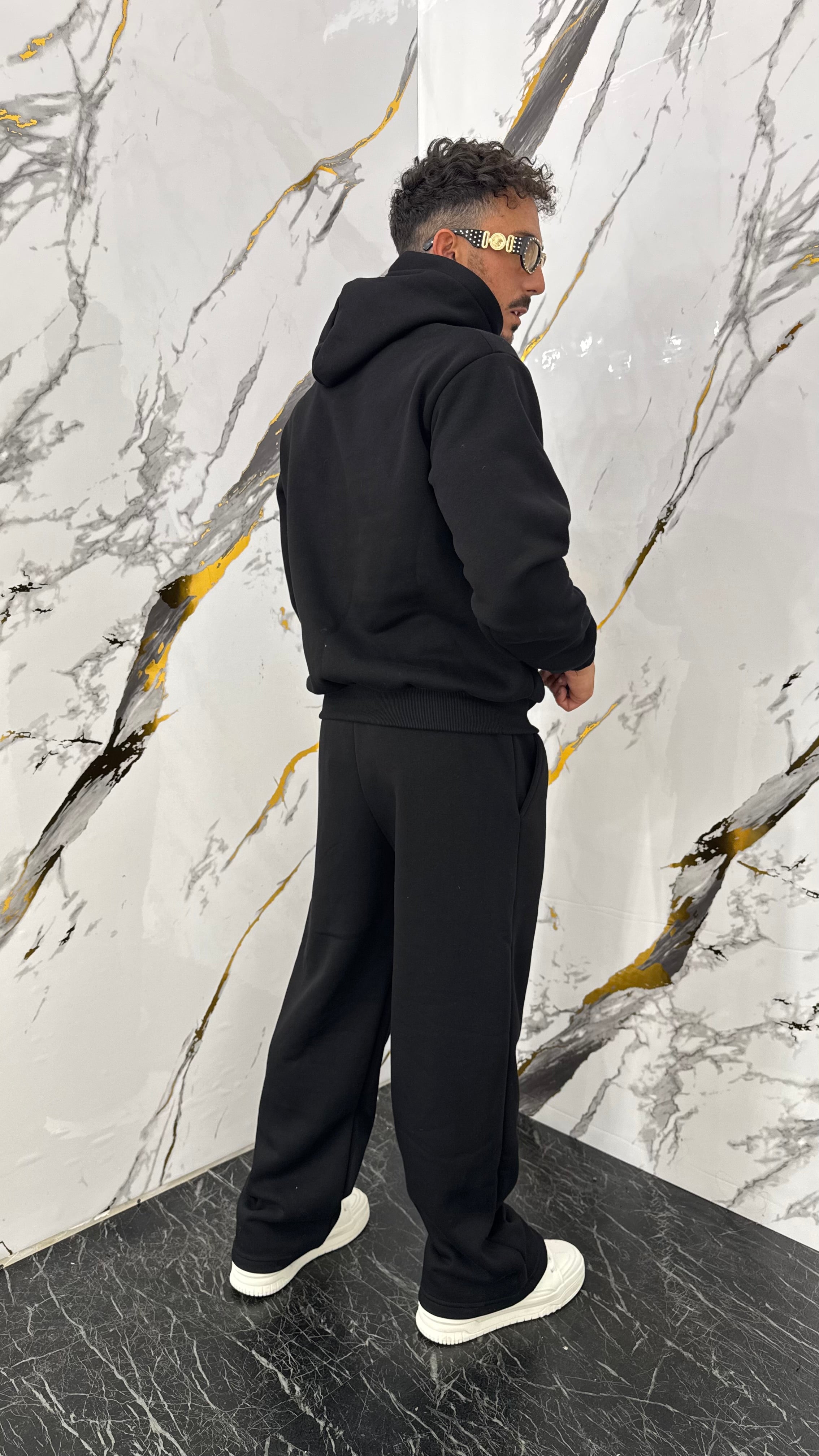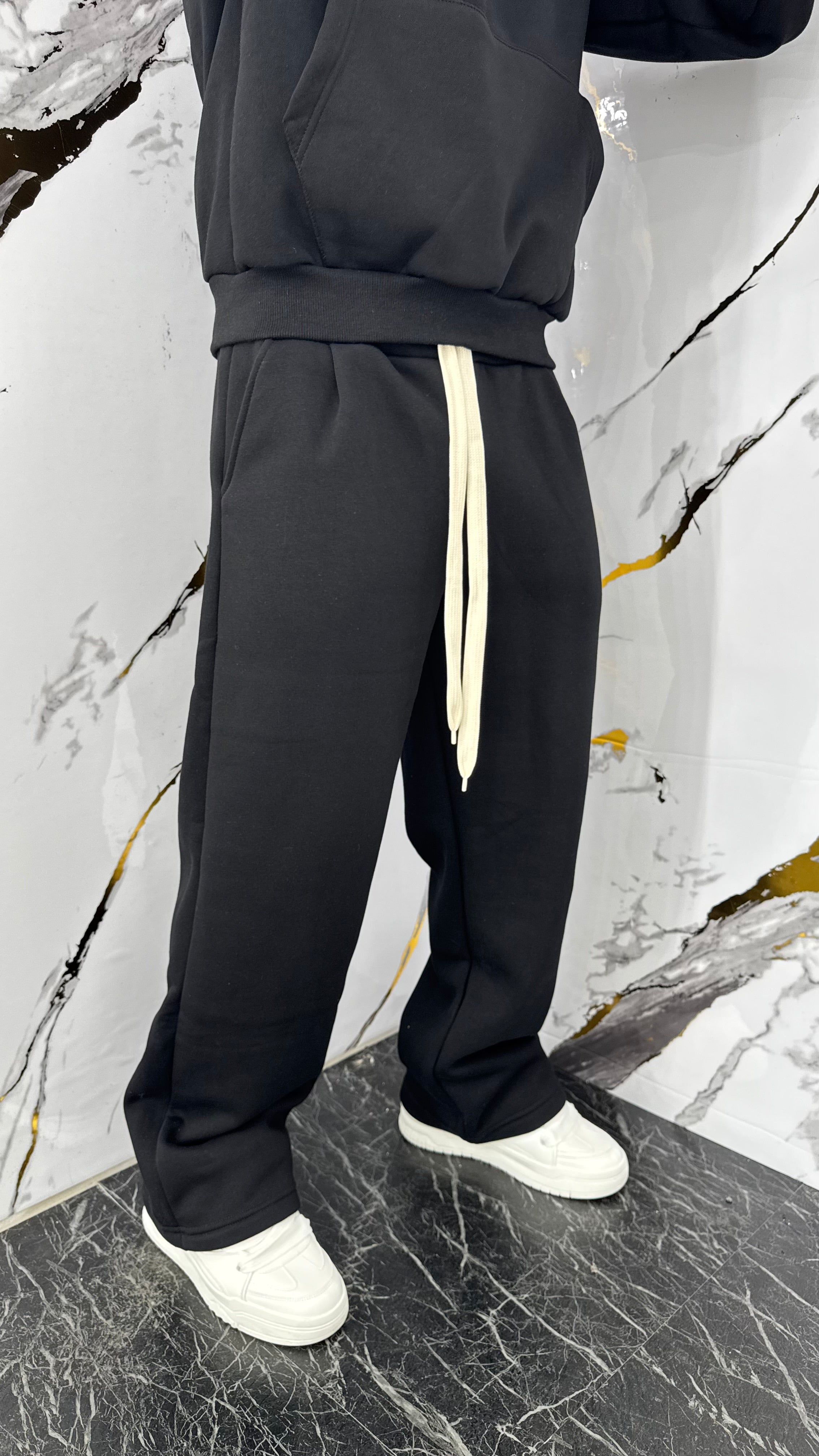 Coordinato con felpa a fondo ampio, realizzato in tessuto morbido e confortevole.