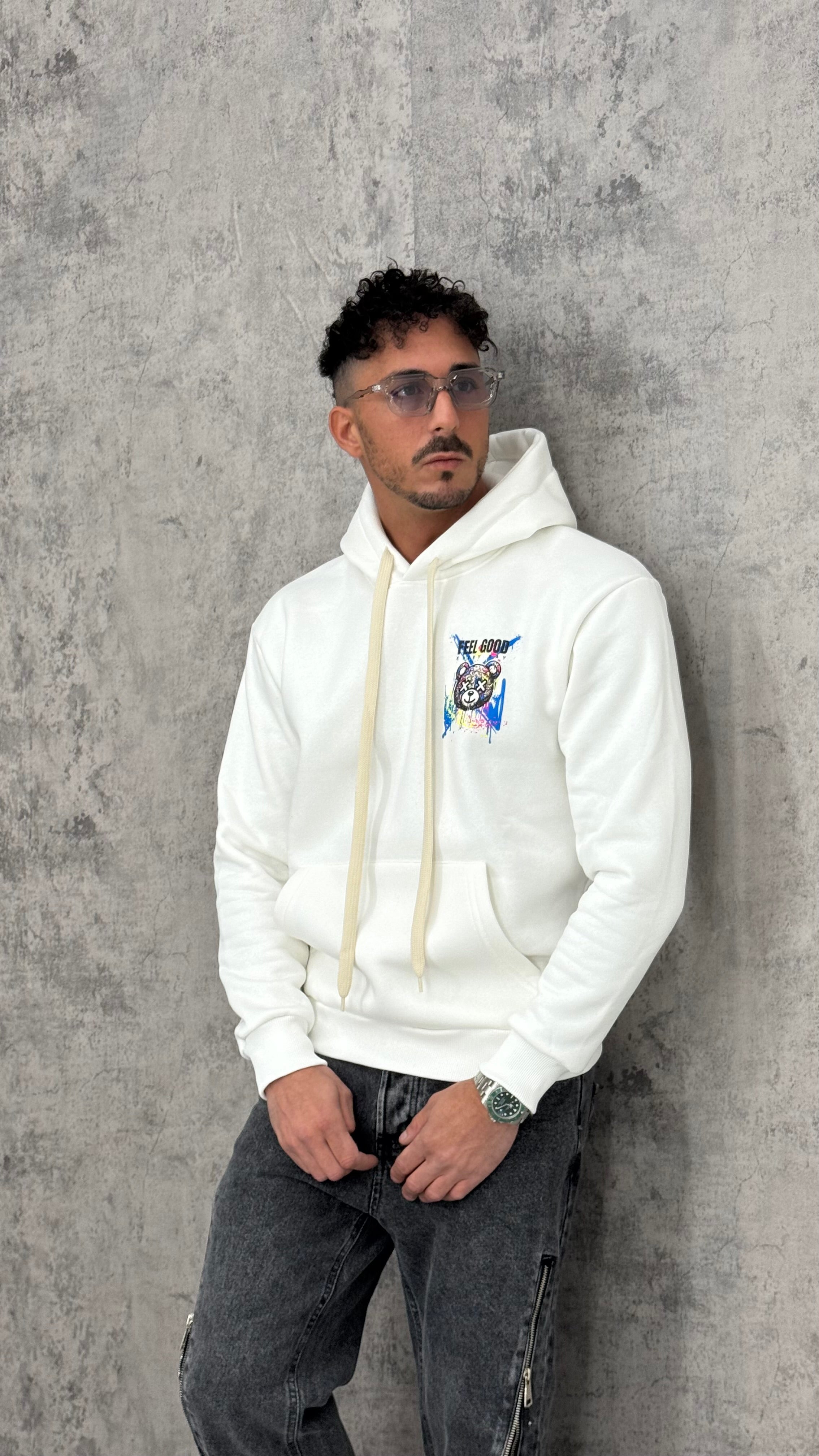 Felpa in cotone con stampa posteriore ispirata al mondo street, raffigurante l'orso. Fit oversize, interno caldo e morbido, ideale per un look urbano