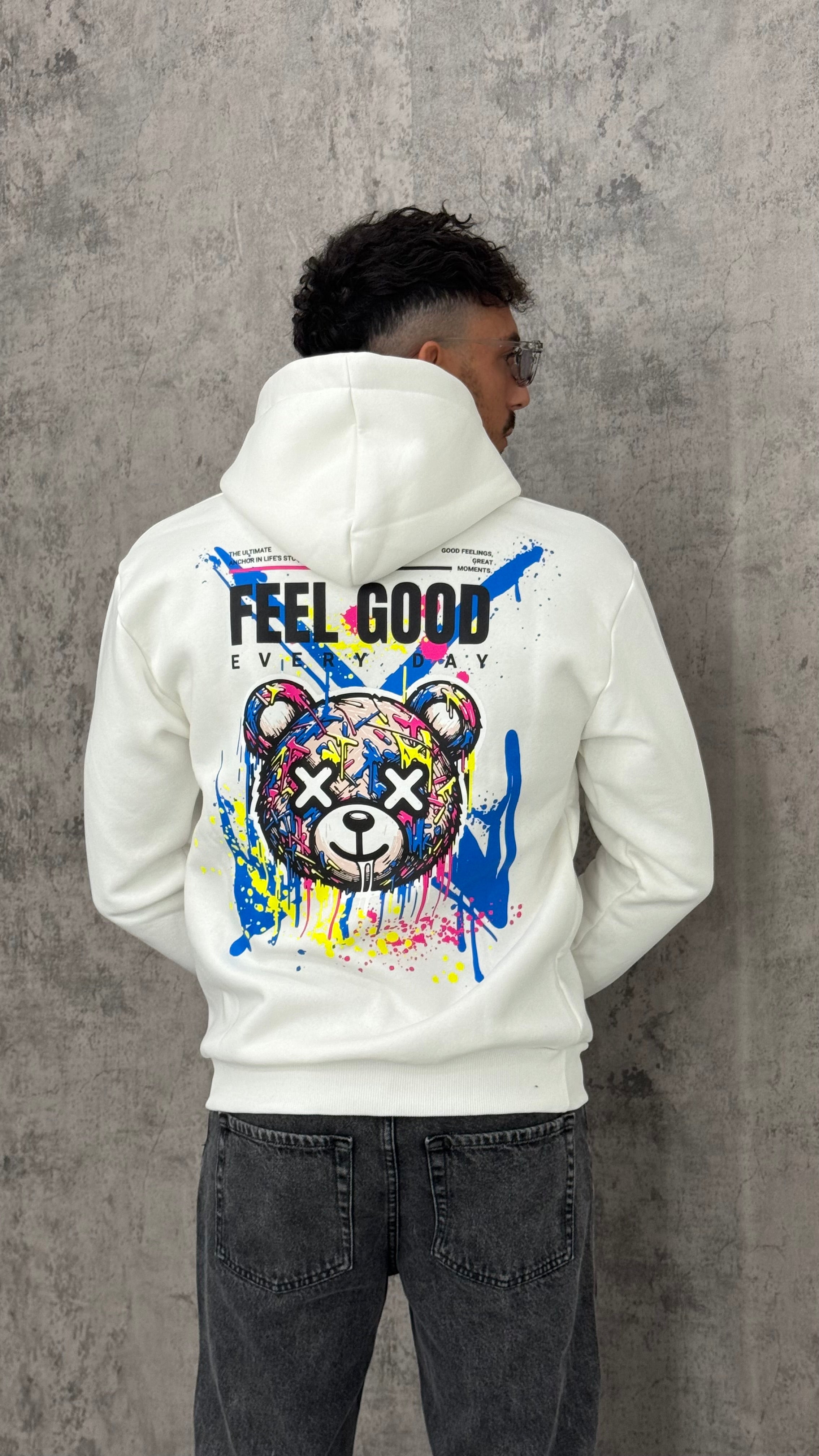 Felpa in cotone felpato con stampa Feel Good sul retro e grafica orso in stile street. Vestibilità comoda, perfetta per un look casual