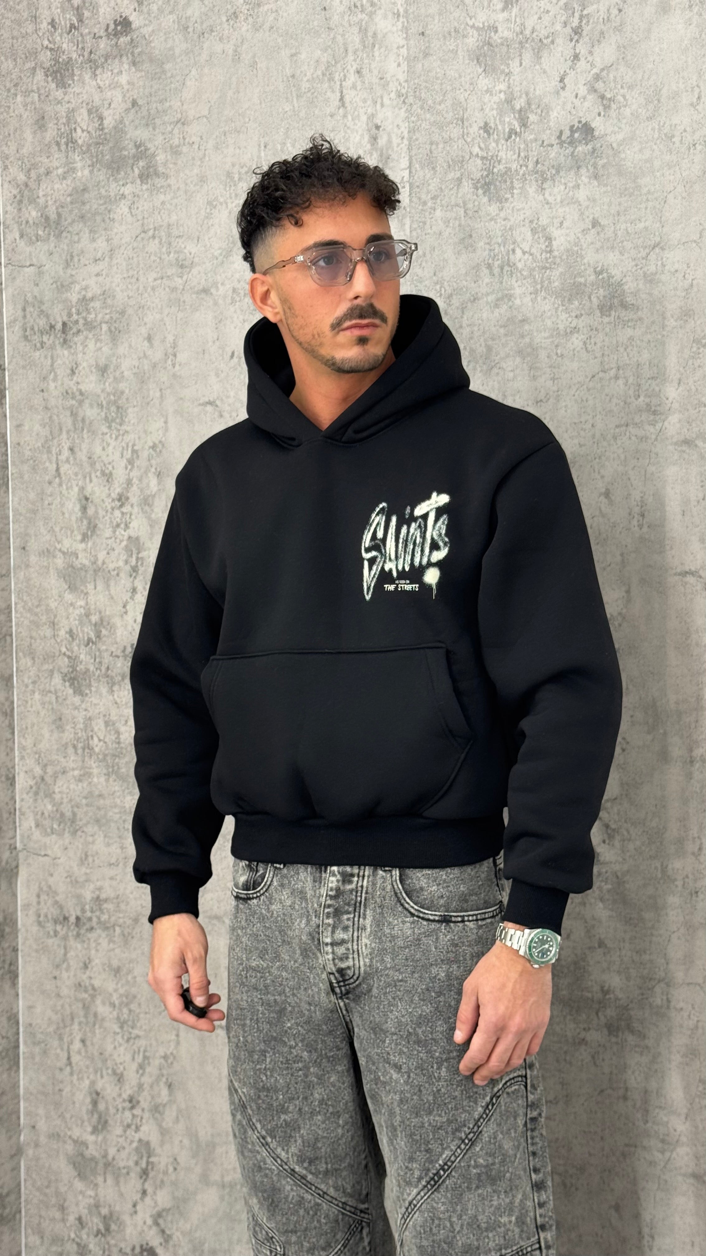 Felpa con scritta SAINTS effetto spray, vibe street grintosa