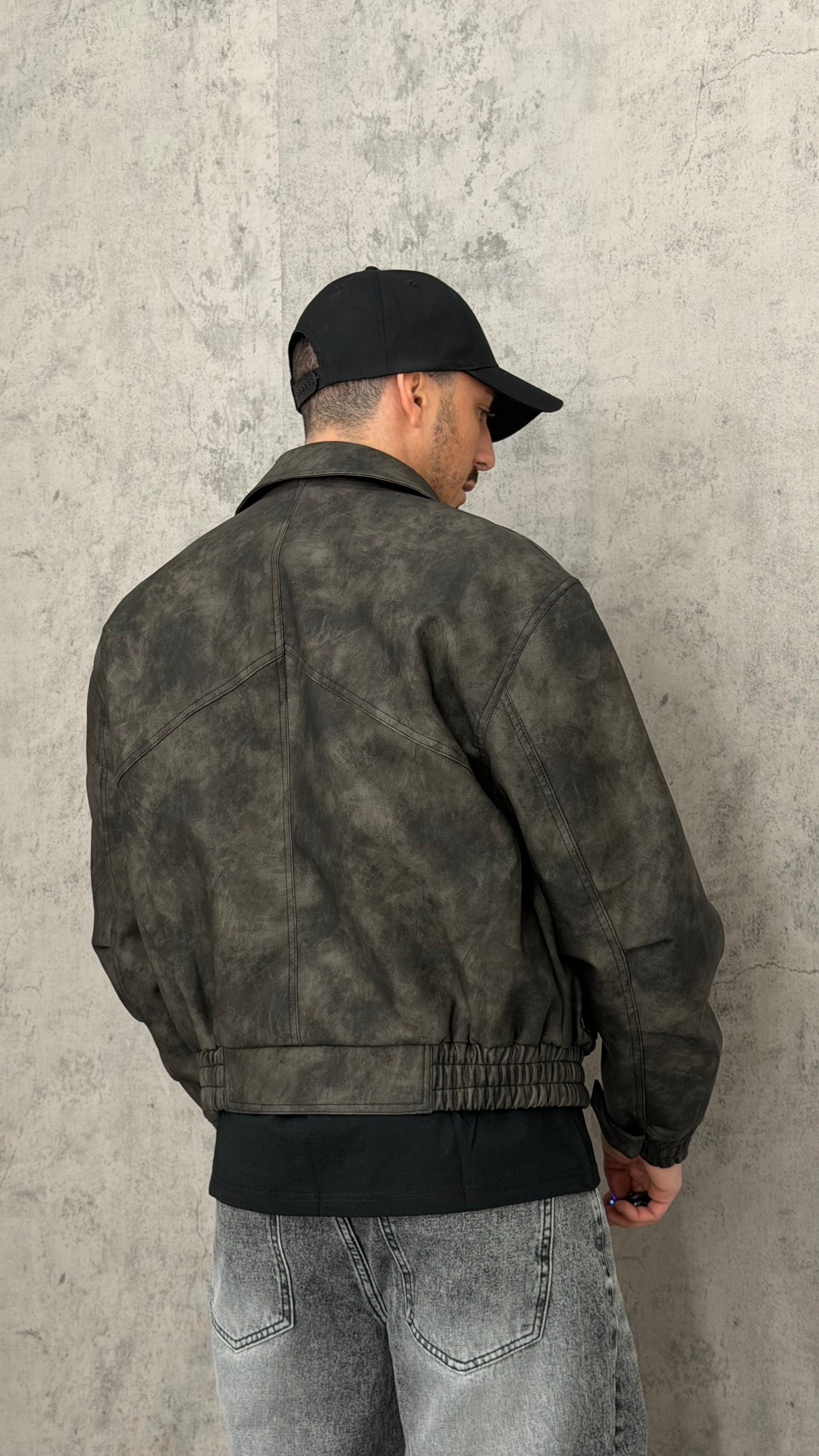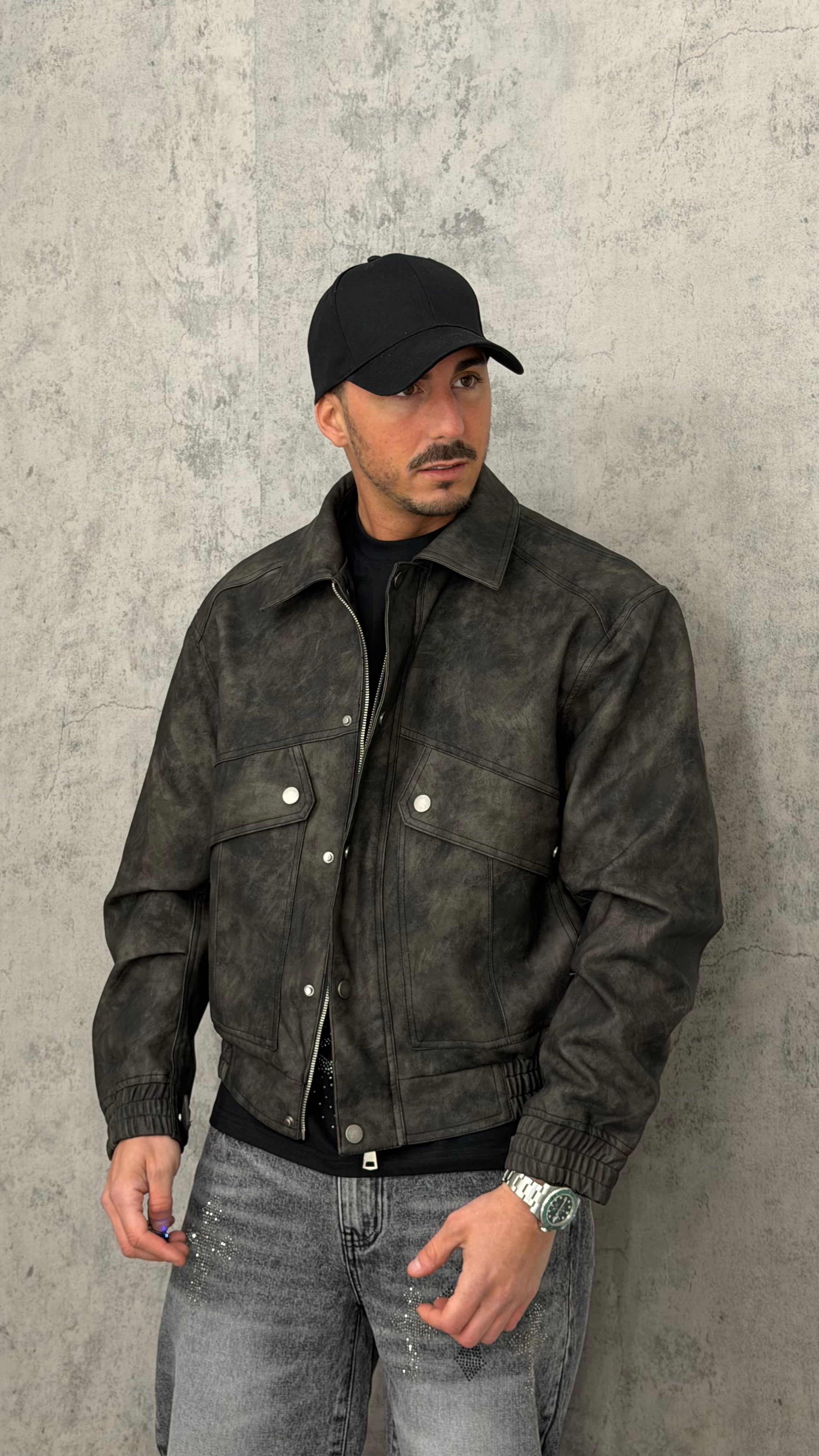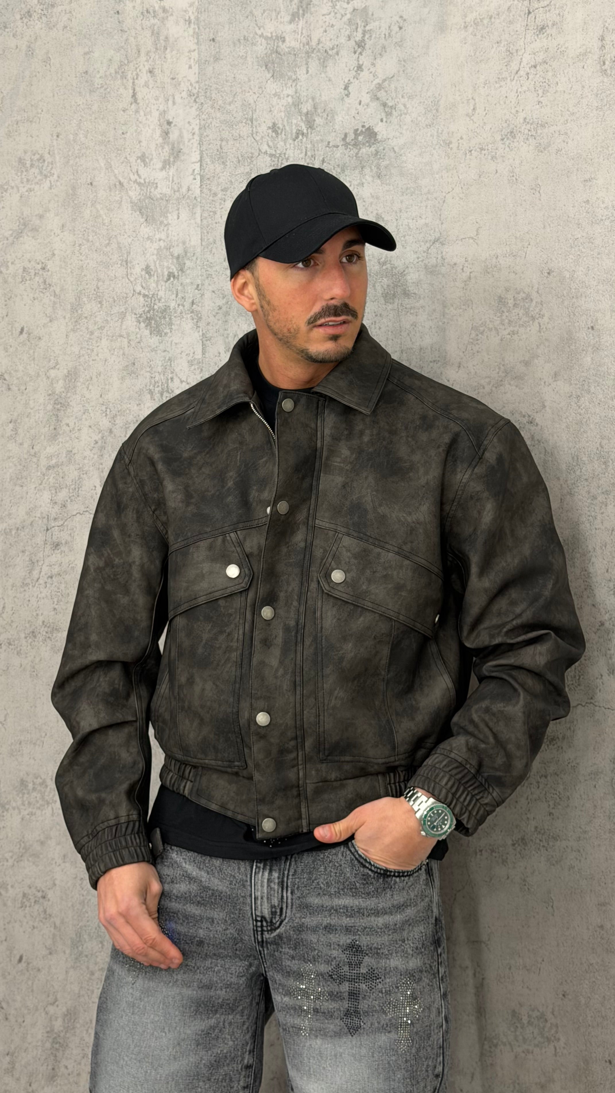 Giacca in ecopelle con vestibilità over, elastico in vita, colletto e chiusura con zip e bottoni. Design street contemporaneo, perfetto per outfit urban con jeans baggy, pantaloni balloon o layering con hoodie e sneakers