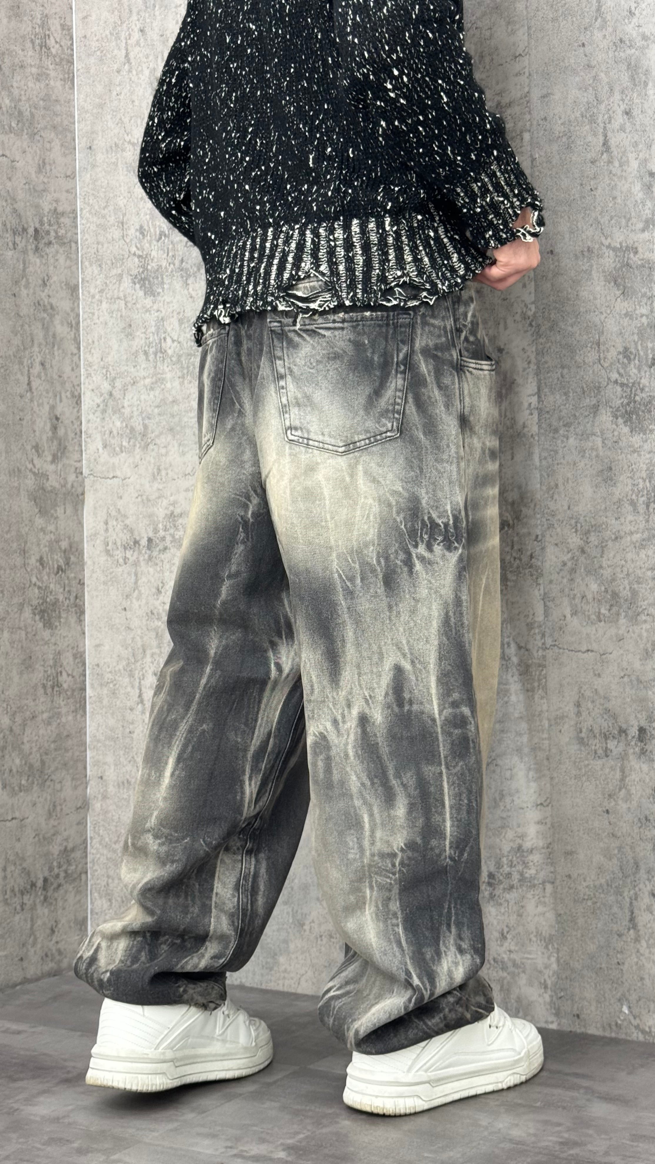 Jeans con lavaggio, sfumature chiare e vestibilità baggy per un look street contemporaneo