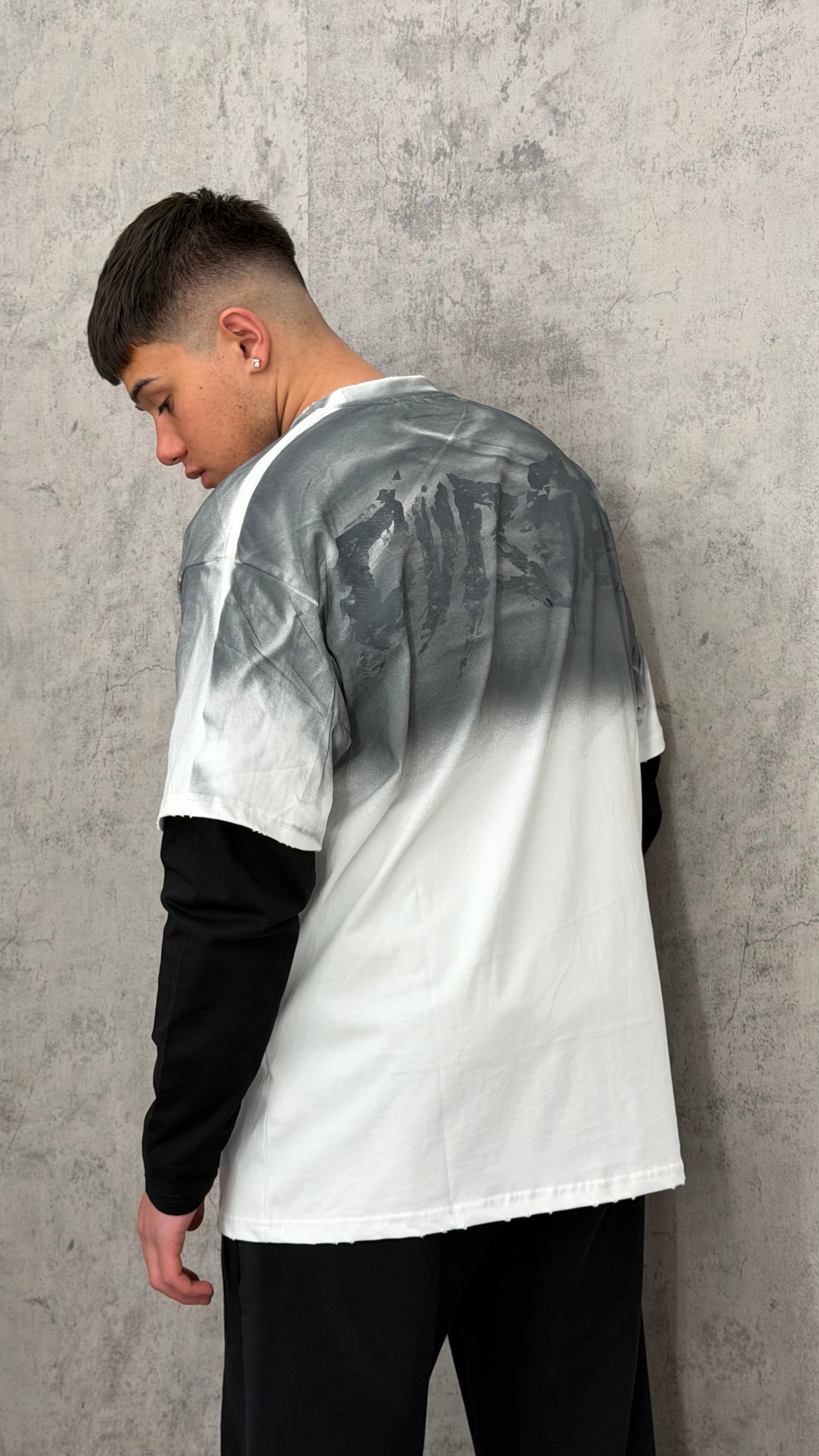 Long sleeve sfumata con scritta frontale cucita e posteriore stampata