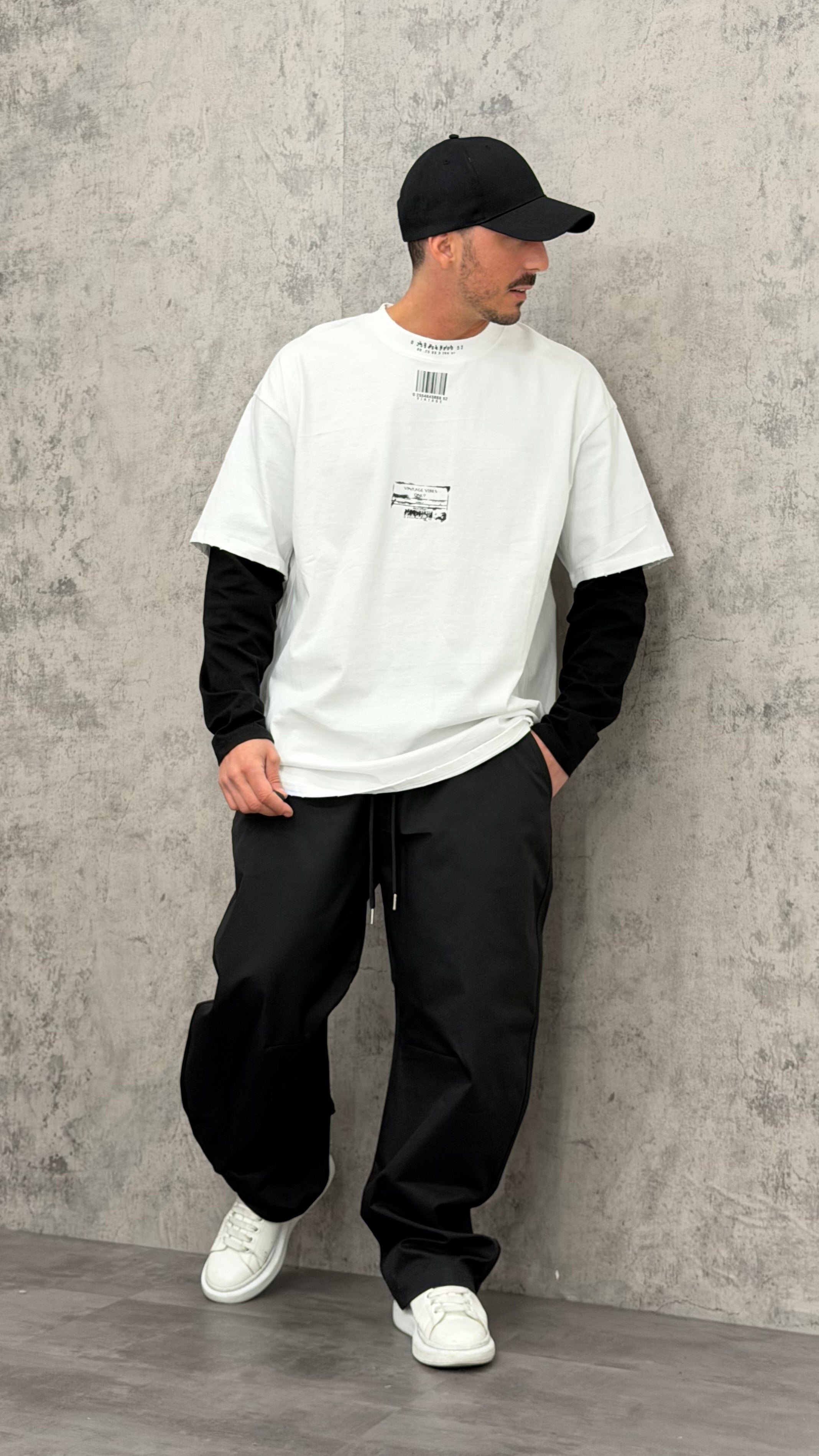 Maglia Long sleeve oversize con codice a barre sul fronte stampato e scritta posteriore cucita