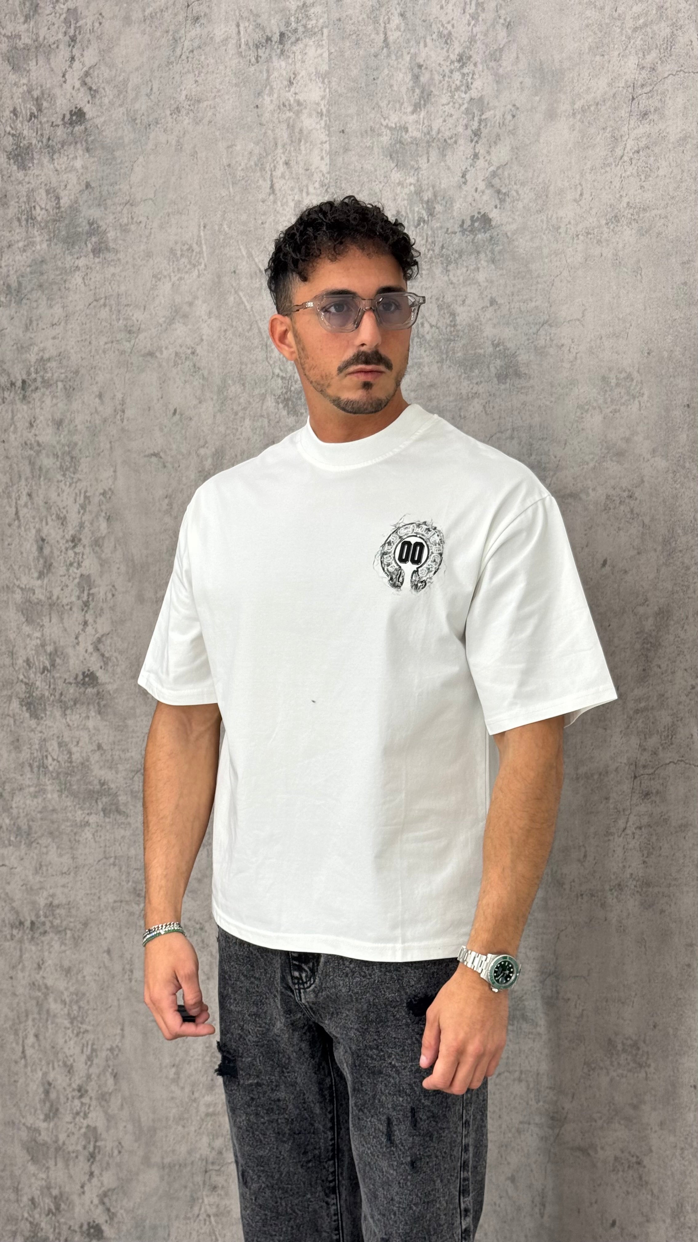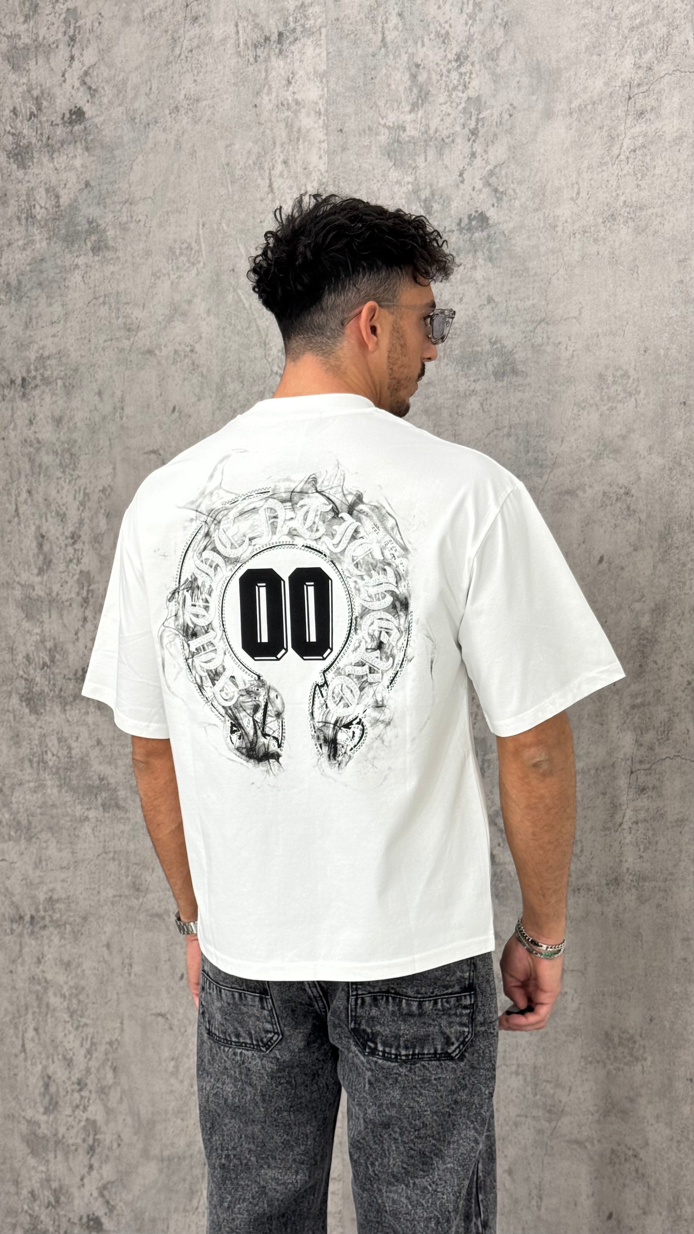T-shirt con stampa piccola sul fronte e grande sul retro. Look street e originale, perfetta per outfit urban e grintosi.
